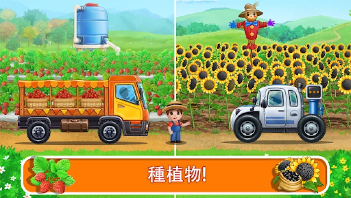 "拖拉机:收获和汽车"是一款专为2至5岁幼儿设计的教育游戏。通过引人入胜的农业和农业运输主题,它帮助孩子们在玩乐中探索农场生活与各种车辆,激发他们对学习的兴趣,发展认知技能。