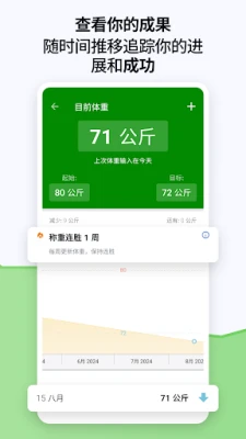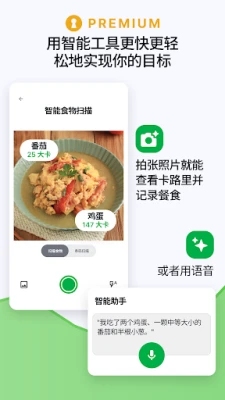 "卡路里计算器"配备了一系列便捷工具,让记录过程轻松自如。您可以利用快速选择表,迅速查找并记录您喜爱的食物、品牌及餐厅的卡路里与营养信息;通过优化条码扫描器,轻松录入包装食品数据;甚至可以使用图像识别功能,随手拍照记录您的餐点。它还支持与Google Fit、Samsung Health及Fitbit等主流运动追踪平台无缝整合,确保您的运动数据与饮食记录完美同步。无论是每日的食物日记、运动消耗记录,还是月度饮食总结日历,以及体重变化追踪,都能助您全面监测进展。